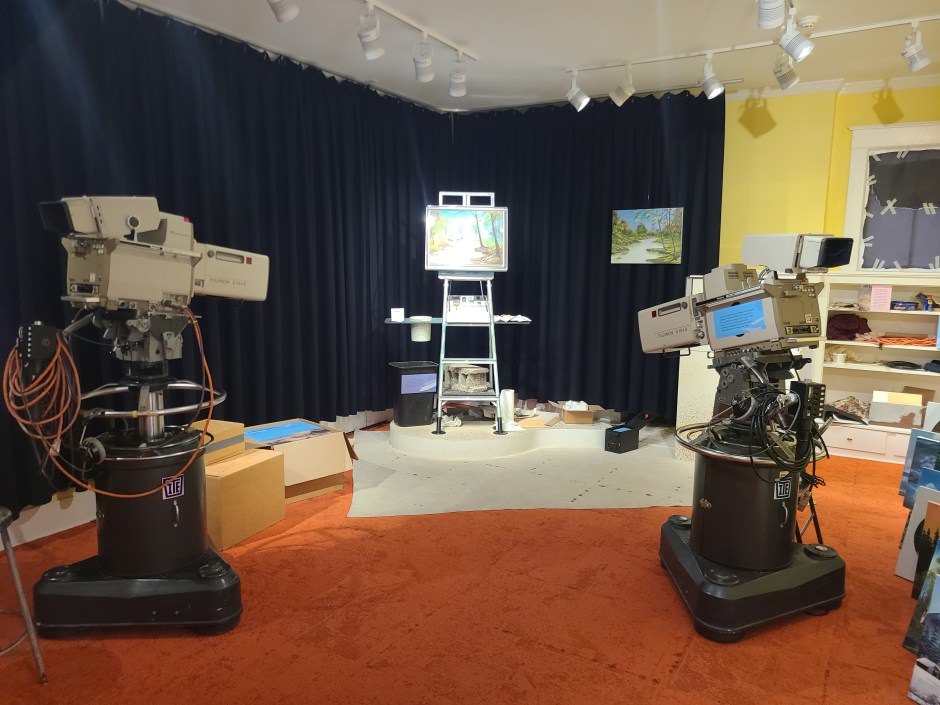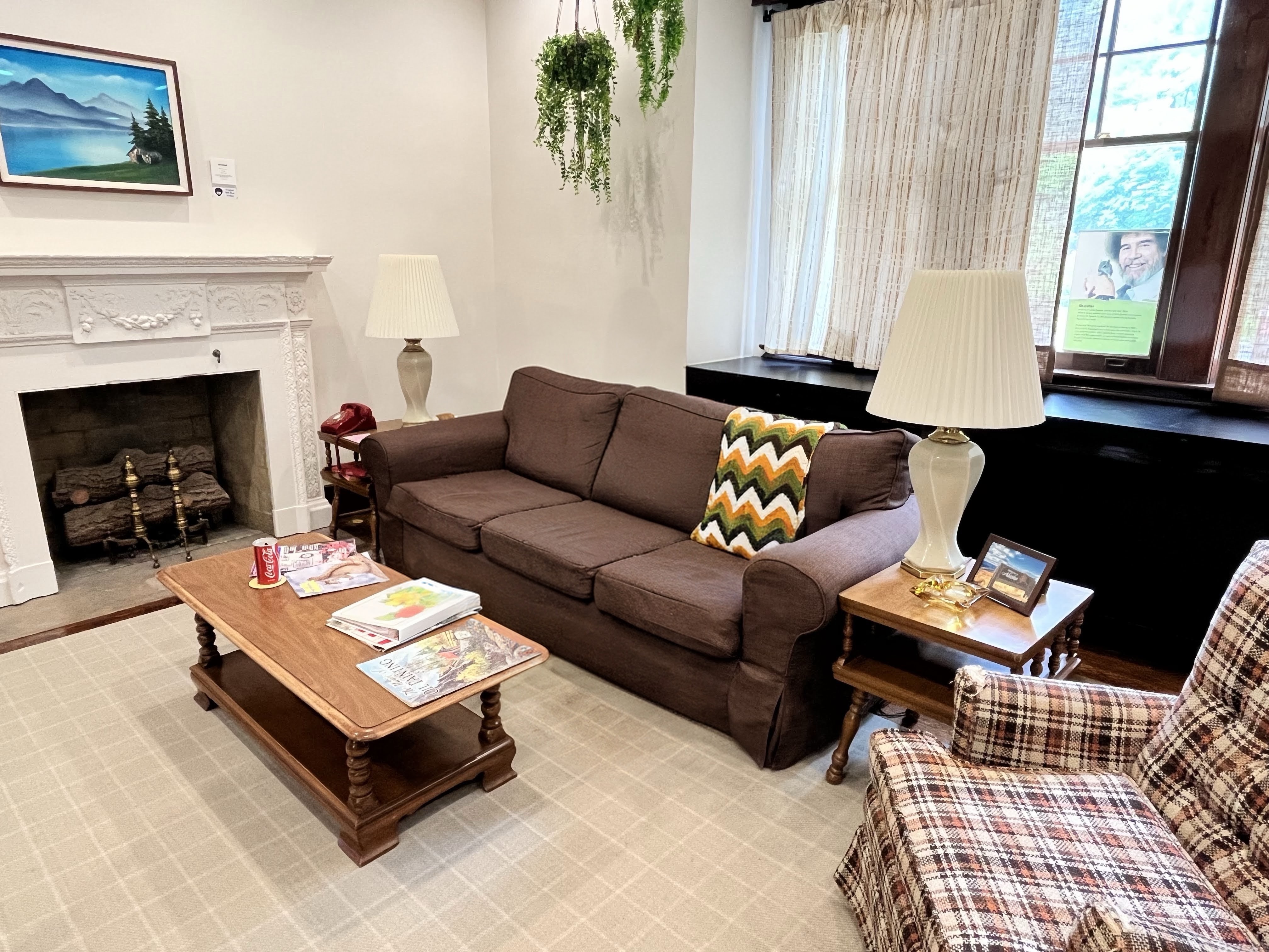 Stepping into the Bob Ross Experience is like stepping into a time machine. We immediately felt like we were inside a living room in the 1980s. The rotary phone was a perfect replica. So was the yellow and brown couch. It looked just like an all-American 80s living room. The experience is family-friendly and hands-on. You can get behind the screen and pretend to be Bob Ross. Sit on the couch and pick up the phone. Relive your nostalgic childhood of watching Bob Ross on PBS.